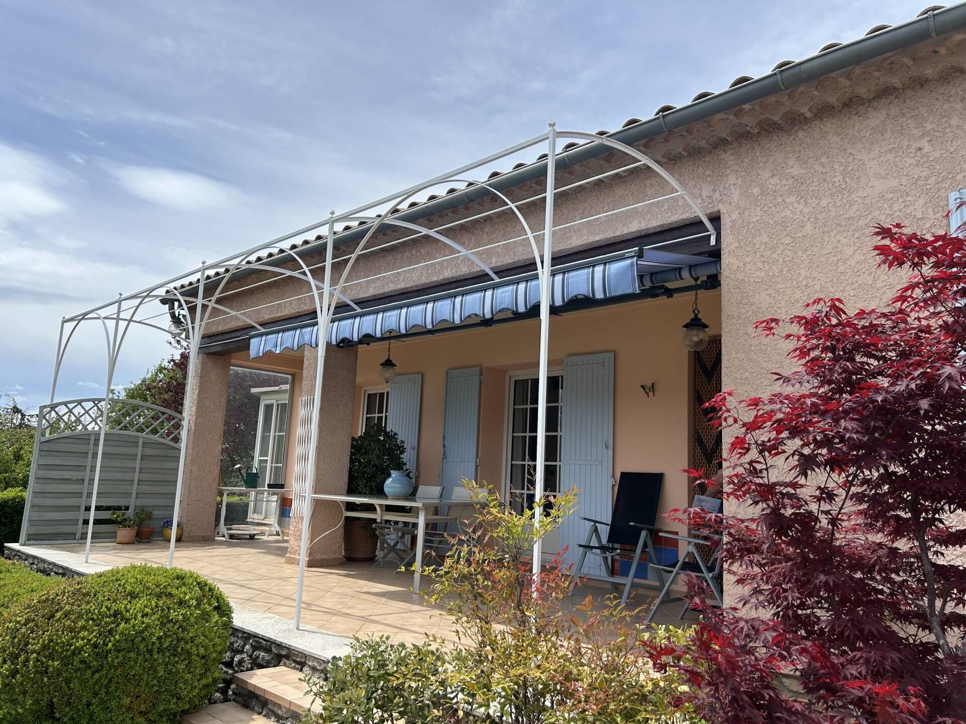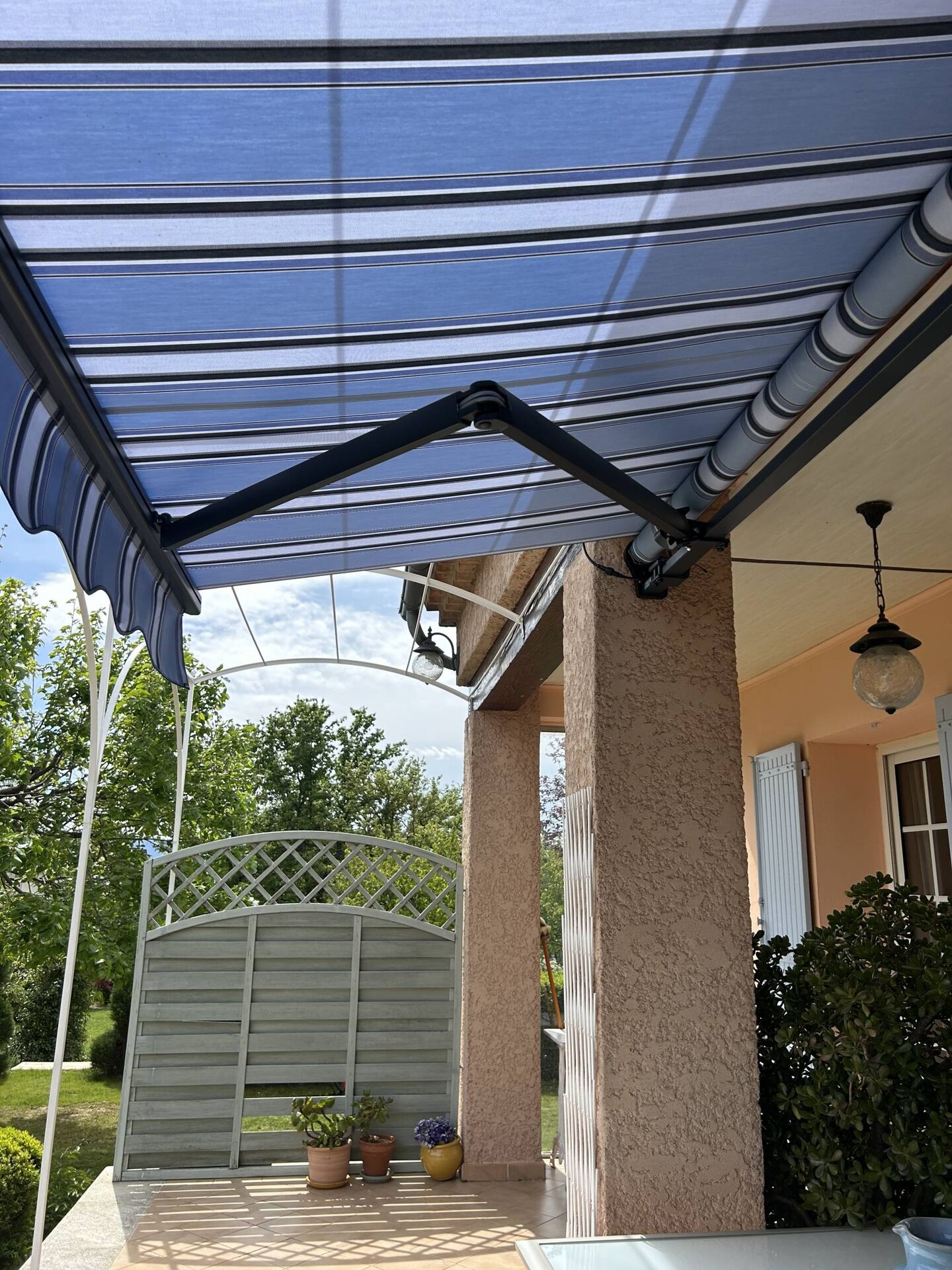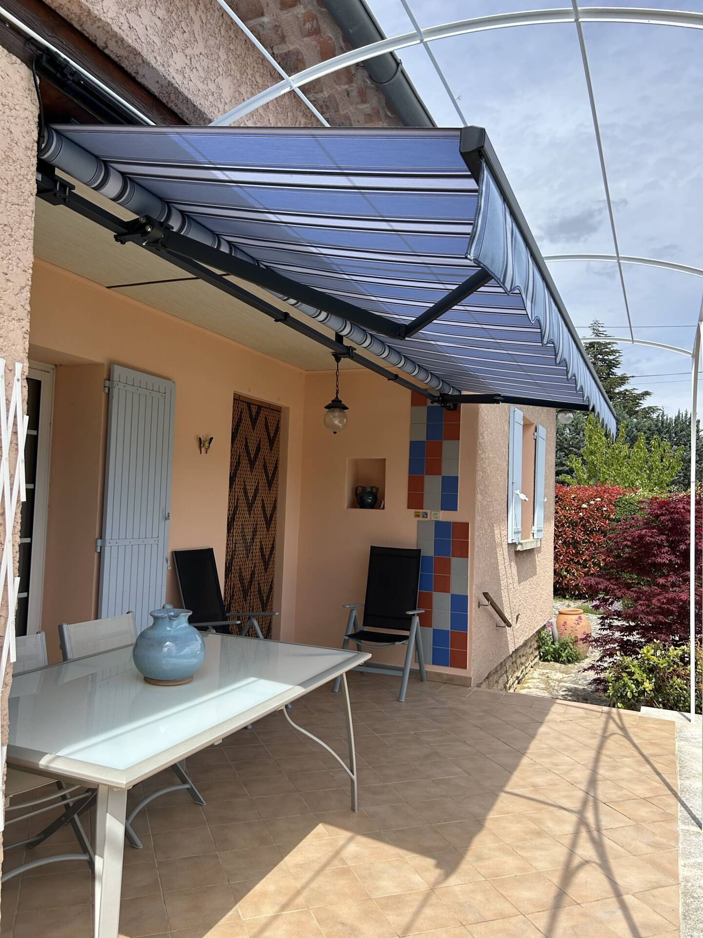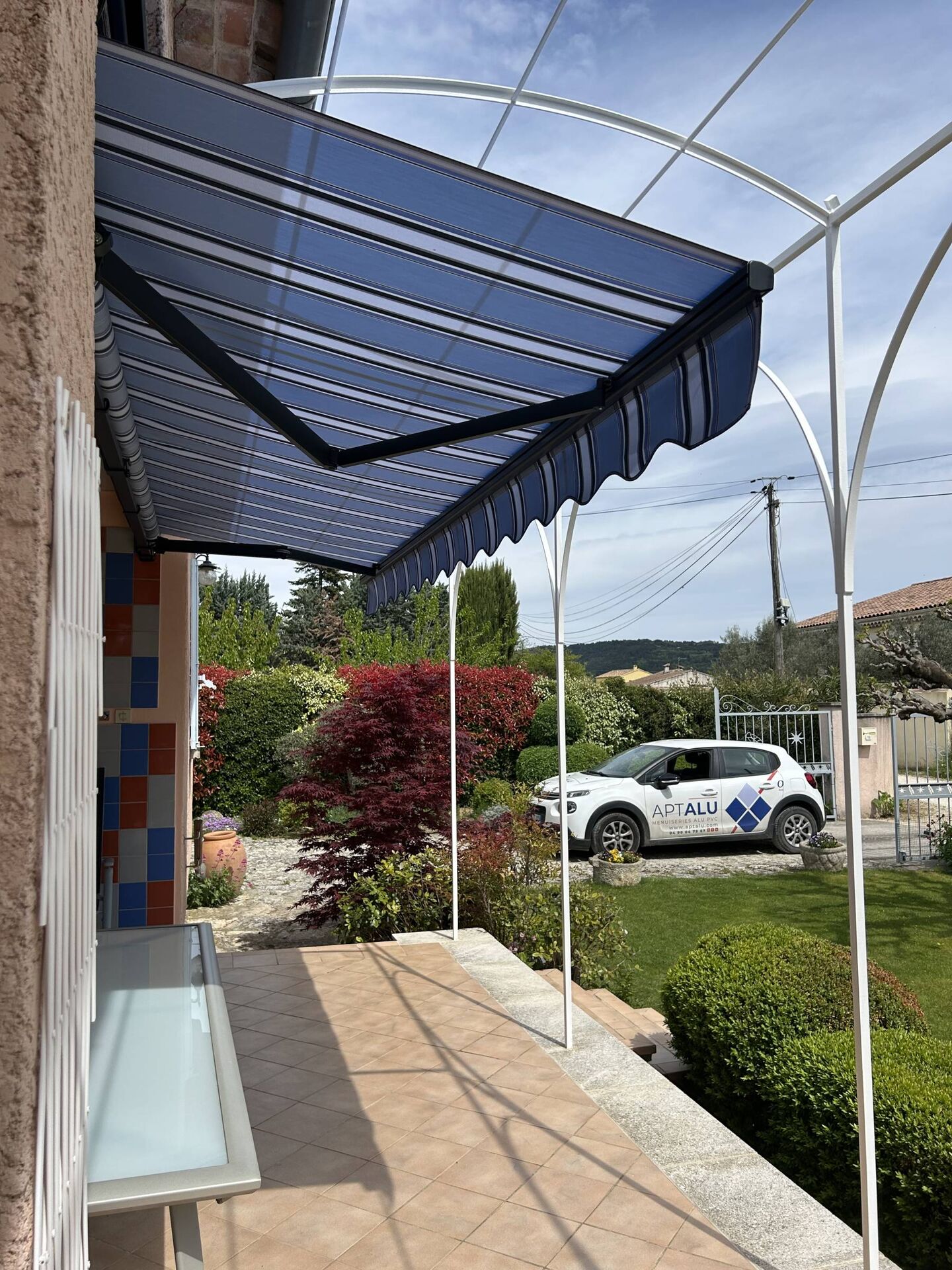 L'équipe APTALU a réalisé avec succès l'installation d'un store banne traditionnel en aluminium motorisé dans une maison située au cœur du Luberon à Gargas.